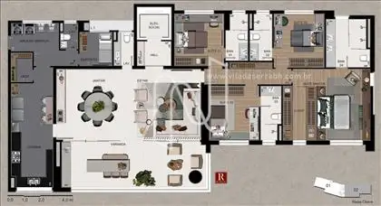 São quatro quartos, sendo duas suítes, com acabamentos de alto padrão que traduzem sofisticação e cuidado em cada detalhe. A sala para vários ambientes integra-se a uma varanda espaçosa, de onde se tem uma vista deslumbrante e permanente para o Vale.