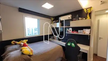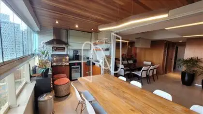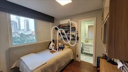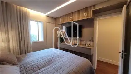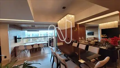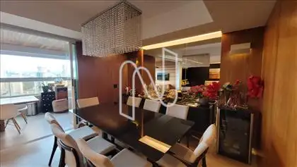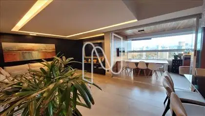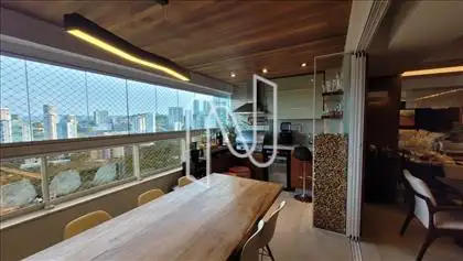 Sofisticação e conforto em um dos melhores condomínios da região. Apartamento com sala para 2 ambientes, lavabo, varanda gourmet com cortina de vidro, suíte master com closet, ar-condicionado, cozinha montada, marcenaria completa e 3 vagas de garagem.